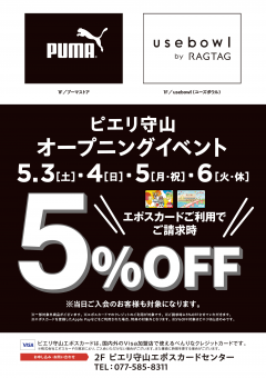【おトク情報】12/21(日) エポスカード利用で10%OFF感謝デー!!