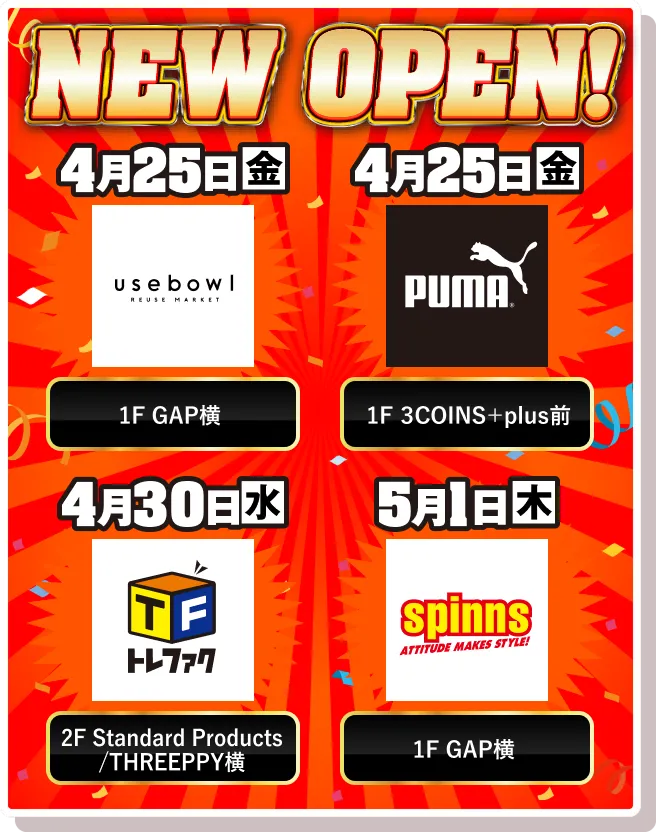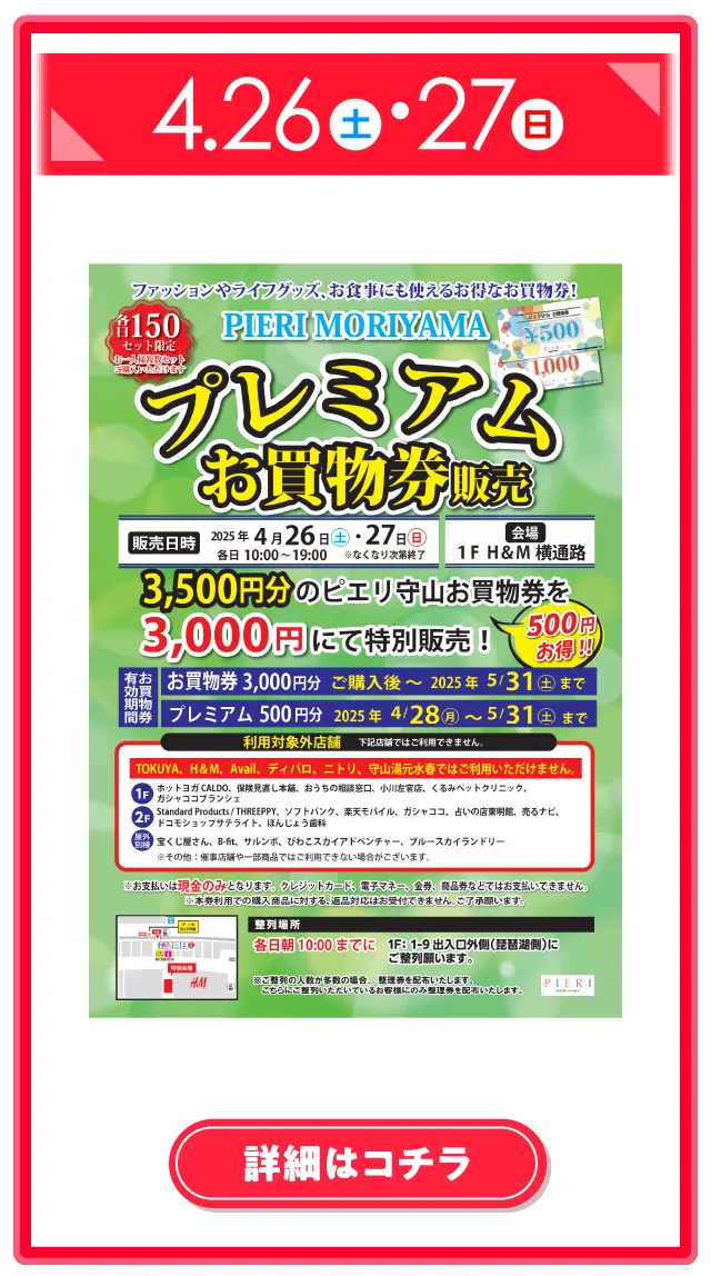 ※+税表記のものを除き、全て消費税込み価格です。 ※イベント期間は、各店舗で表記しているものを除き、 全て4/25(金)~5/6(火・休)です。 ※仕入れなどの都合により、内容が変更になる場合が ございます。 ※イベントは状況により予告なく変更する場合がござい ます。詳細は公式HPをご確認ください。