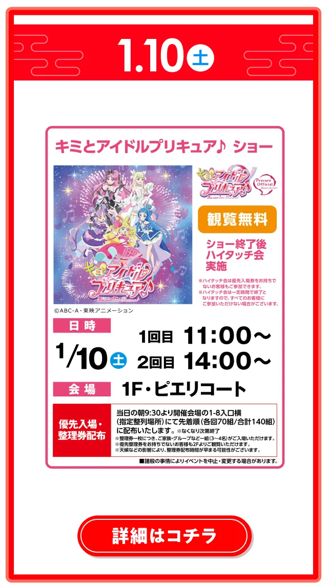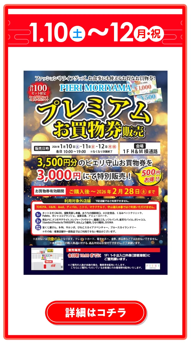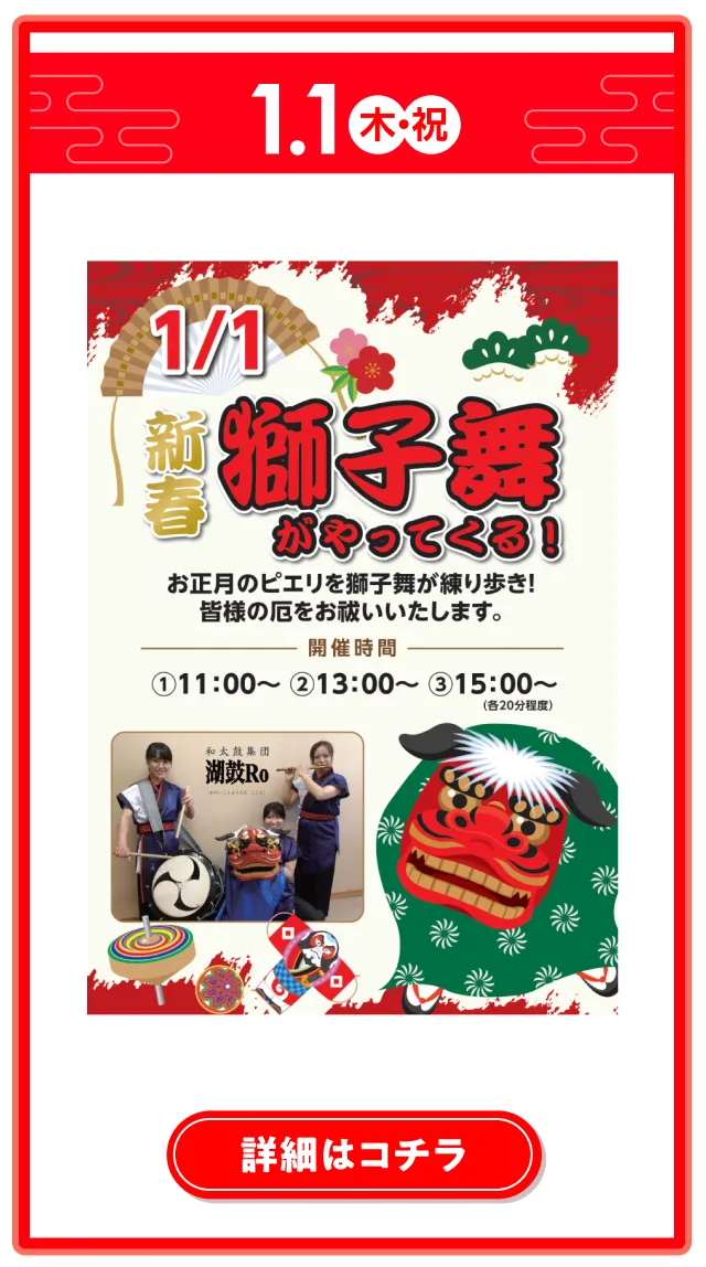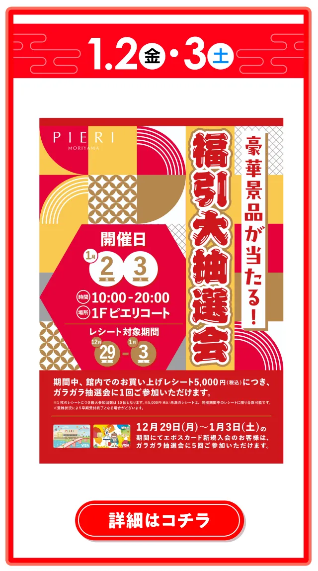 ※+税表記のものを除き、全て消費税込み価格です。 ※イベント期間は、各店舗で表記しているものを除き、 全て1/1(元日)~1/12(月・祝)です。 ※仕入れなどの都合により、内容が変更になる場合が ございます。 ※イベントは状況により予告なく変更する場合がございます。詳細は公式HPをご確認ください。