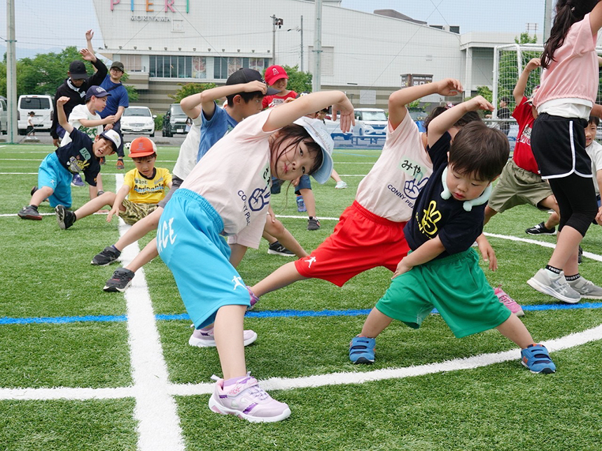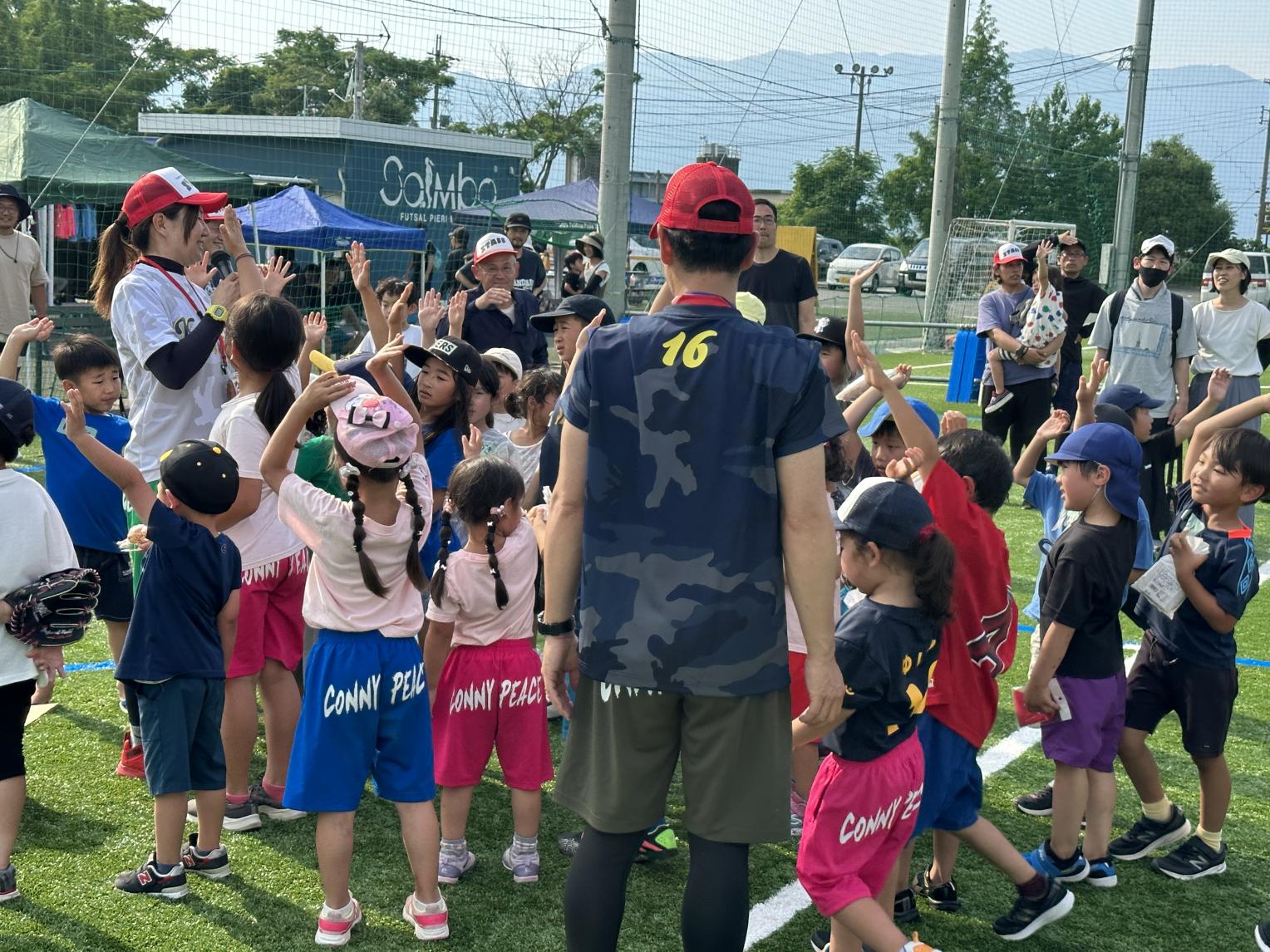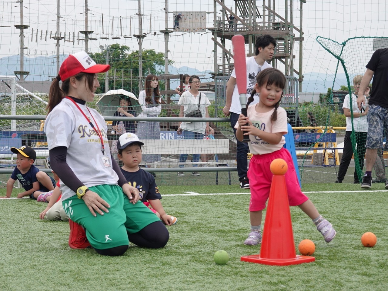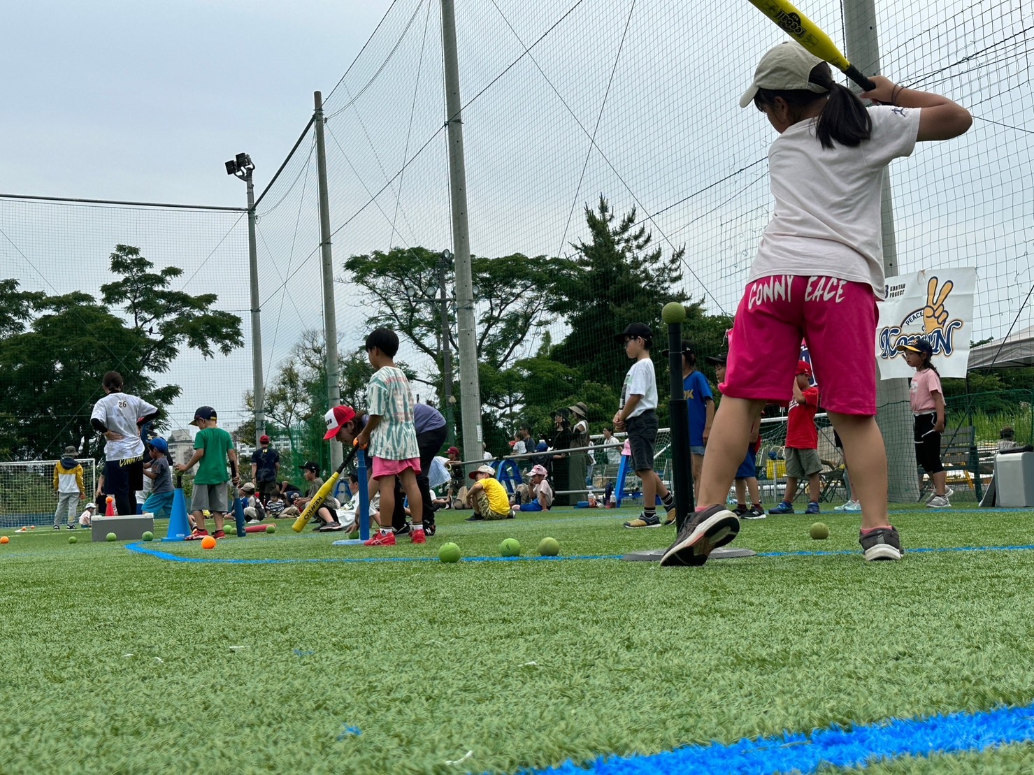 人工芝のフットサルコートにて、ティーボールをおこないます。