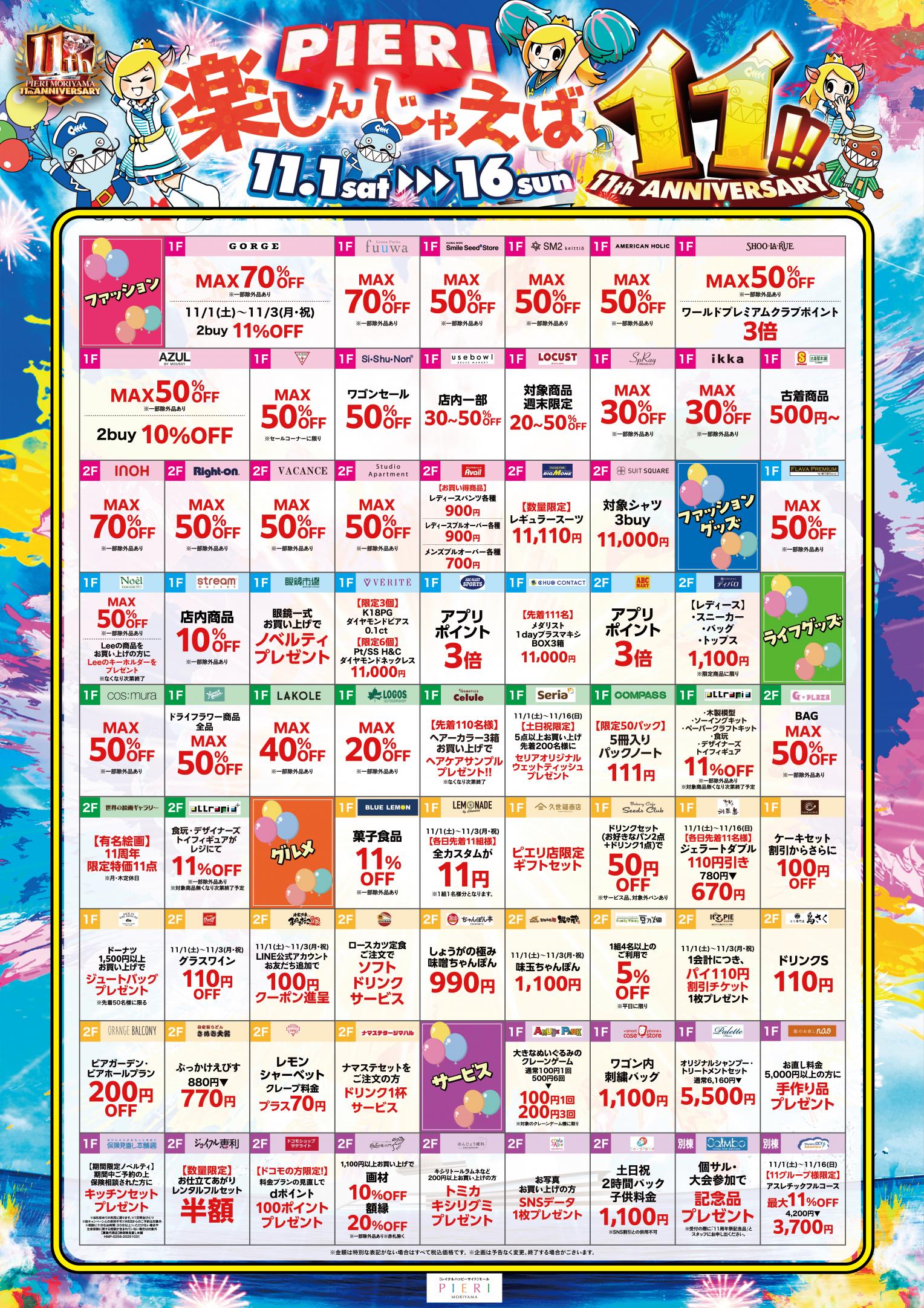 PIERI MORIYAMA 11th ANNIVERSARY セール情報