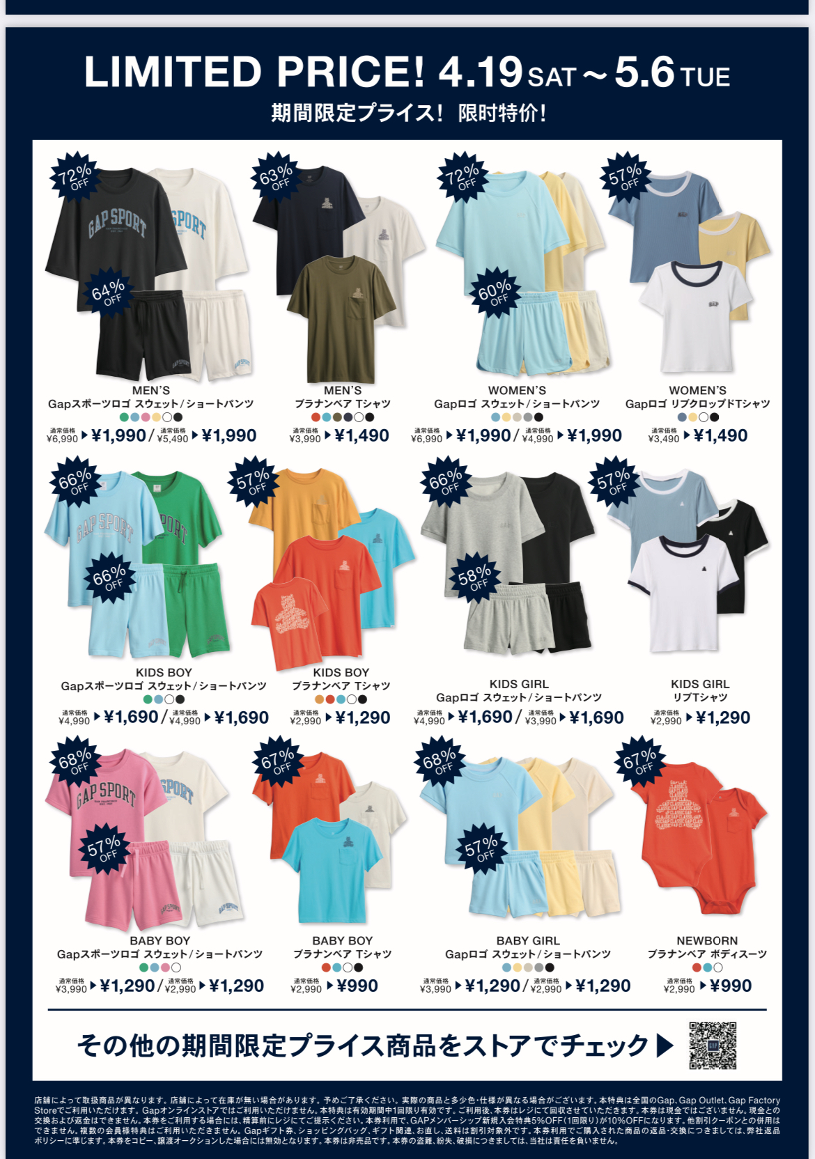 Gap はウィメンズ、メンズのアパレルとアクセサリーのブランドとして、