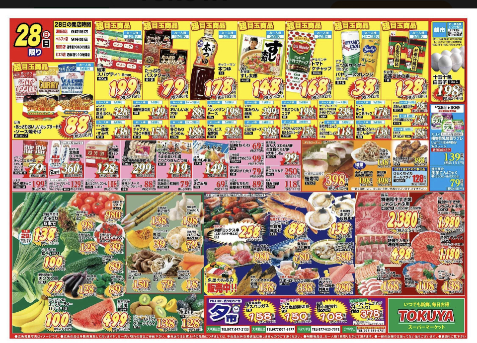 鮮度と価格にこだわりぬいた食品ディスカウントスーパーTOKUYA。<豊かな暮らしのお手伝い>をモットーに毎日、お買得価格で提供しております。