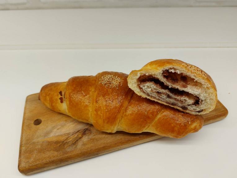 クロワッサンと菓子パンをコラボさせた当店のクロワッパンにやさしい甘さの粒あんを巻き込みました。相性のいい粒あんの優しい甘さがお口の中いっぱいに広がります。