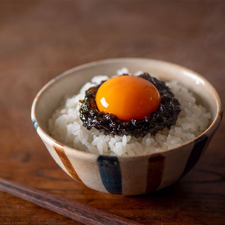 お醤油の代わりに海苔バターで究極のTKG、卵の黄身だけを使うことで濃厚で贅沢な卵かけご飯が味わえます。