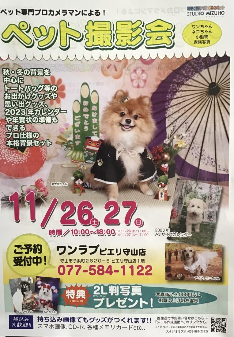11月26日、27日にプロカメラマンによるペット撮影会を行います!
