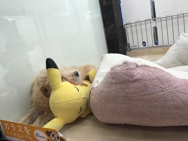 ピカチューを枕におやすみ中☺︎