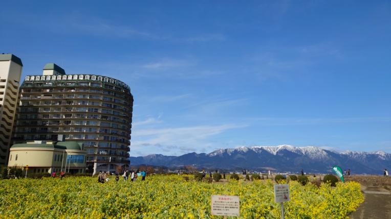 なぎさ公園は毎年この時期、一面”菜の花畑”でたくさんの観光客でにぎわっています。