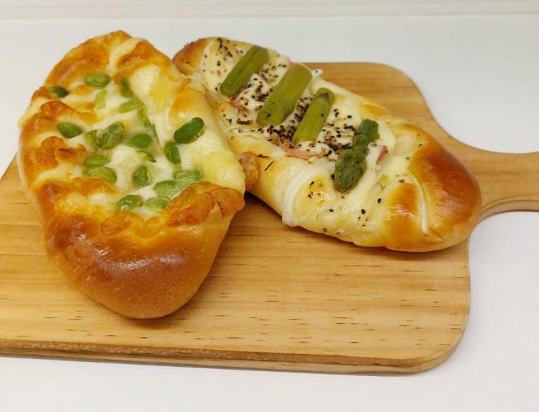 暑い夏にくどくないお味の枝豆チーズパンとアスパラベーコンパンの登場です。
