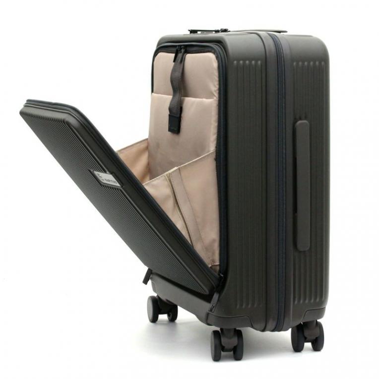 本体を立てた状態で荷物の出し入れができるフロントオープンポケット付き。更にフロントオープンポケットから隅々までアクセス出来るので、1度にドサッと荷物入れてしまいたい方用の1部屋タイプのキャリーとしても使えます。真ん中のジッパーを開けば細かく仕分けしたい方に便利な2部屋タイプのキャリーとしてもお使いいただけます。フロントオープンポケットには14インチクラスのノートパソコンやタブレット端末が収納できるポケット付き。