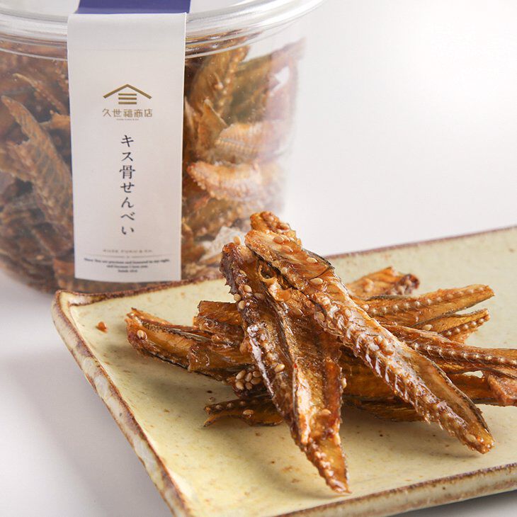 パリっとした食感とやさしい味付けでクセになるキス骨せんべいです。