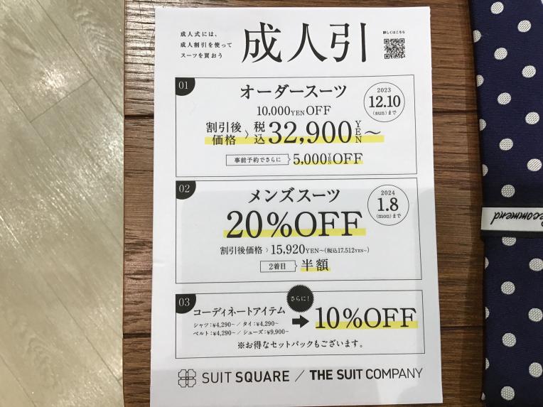 • SUIT SQUAREでは成人割引キャンペーン実施中‼️