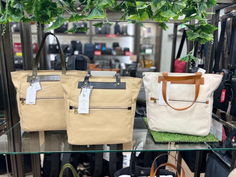 帆布との組み合わせや同素材のステッチなど、こだわりの商品を店頭にてご覧ください♪