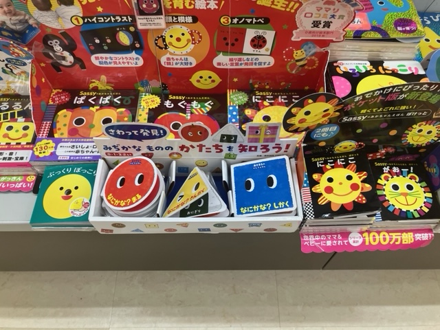 赤ちゃん向け絵本のコーナーに、続々とミニサイズ絵本が入荷しています。