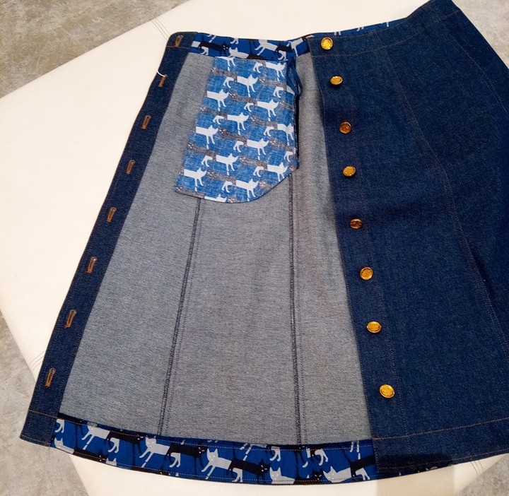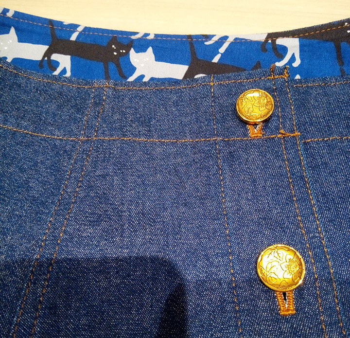 裏地のウエスト部分と裾部分やポケットには猫柄が