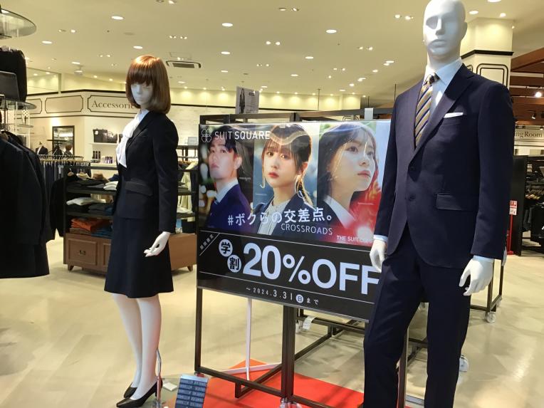 春が近づいてきております。この季節はスーツが必要なイベントばかりです。特に近いイベントが卒業式です。まだスーツをお持ちでない学生おられると思います。現在、SUIT SQUAREピエリ守山店では学生会員様(※現在、専門•大学•短大の学生)を対象にした選べるパック割引や全品20%off等を実施しております。