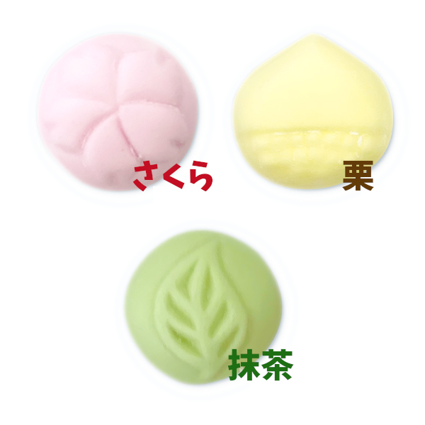 「桜、抹茶、栗」の3種の味わいが楽しめる、和を.感じるやさしいクリームが入っています。