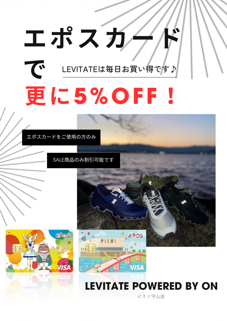 【毎週水曜日は】エポスカードご利用でSALE商品が更に5%OFF!?!【LEVITATE Powered by On】