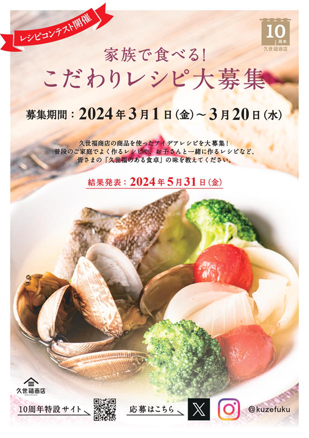 \久世福10周年企画✨レシピコンテスト開催!/家族で食べるこだわりレシピ大募集!