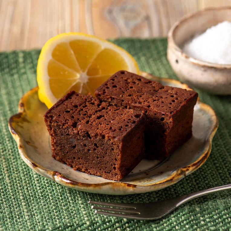 濃厚なチョコレートケーキに、瀬戸内のレモンと五島の塩をあわせて、