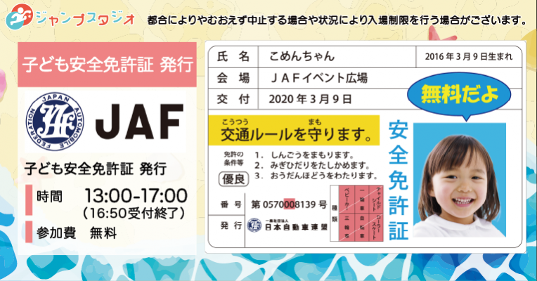 ◼︎13:00-17:00 JAF 子ども安全免許証 発行
