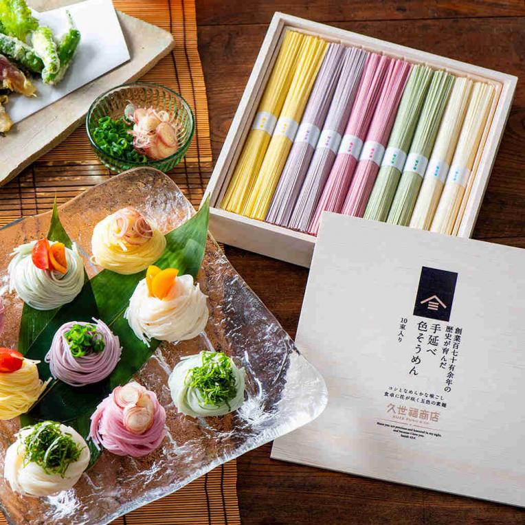 創業百七十有余年の歴史が育んだ 手延べ色そうめん 10束入り 【木箱入り/包装付】