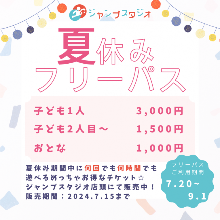 7月20日(土)~9月1日(日)までの夏休み期間中