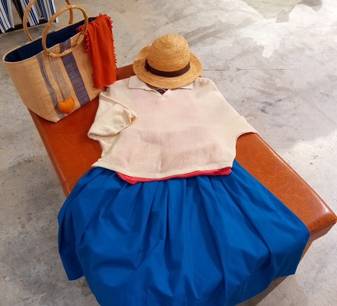 パラスパレスの可愛いニットとミディウミのブルーのスカート入荷しております