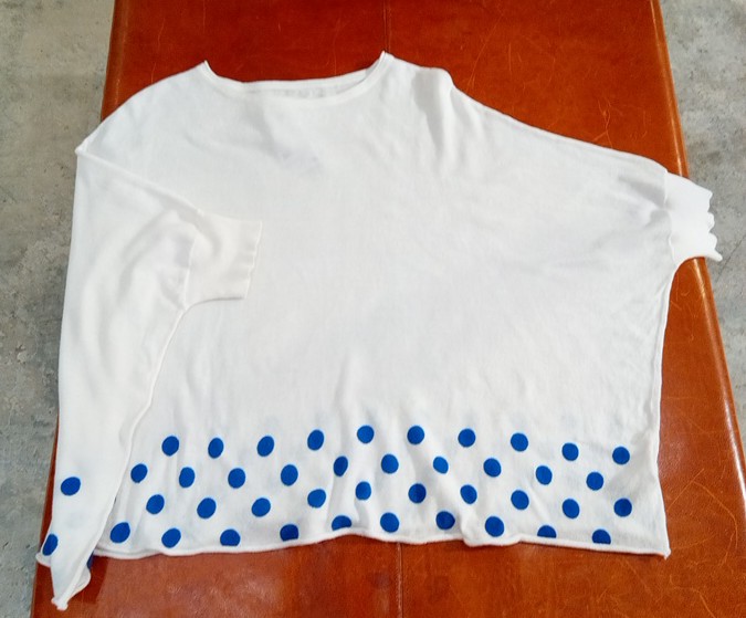 可愛いドットの薄手ニットと楽ちんワイドパンツ入荷しております