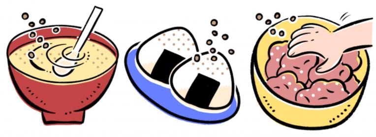 お味噌汁や煮物には、「粉末万能だし」をお湯に混ぜてご利用ください。