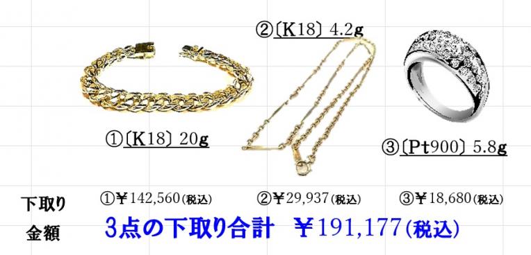 ※地金の相場は日々変動いたしますので、お持ちになった日の相場で計算いたします。
