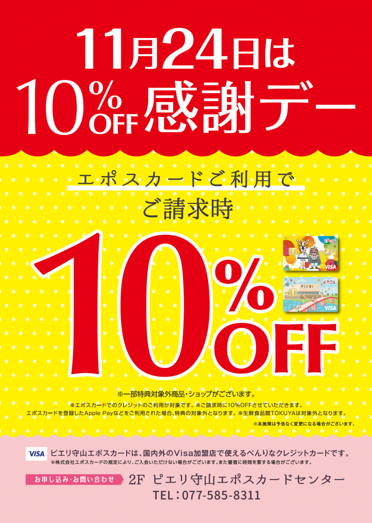 11月24日(日)はエポスカード10%OFF感謝デーです!