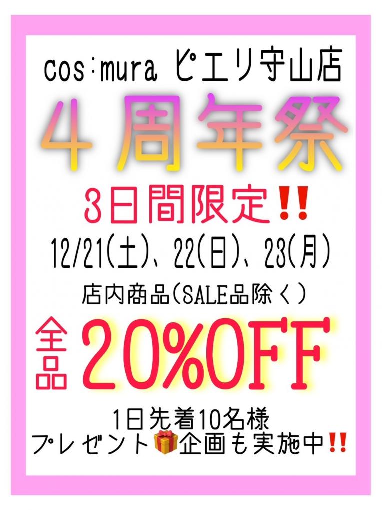 なんと3日間限定でコスムラ4周年記念祭!!!('◇')!!!