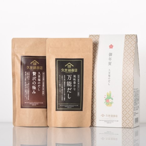 看板商品の「風味豊かな万能だし」が入った「御年賀 久世福のだし2個セット」や、