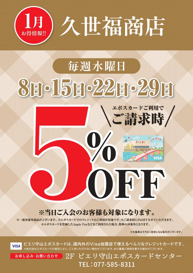 毎週水曜日は【エポスカード利用で5%OFF!】✨