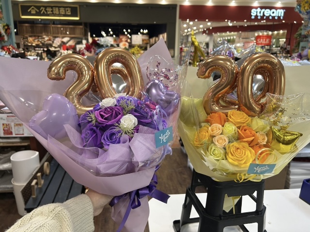 成人式商品をお買い求めのお客様が多数のため、申し訳ございませんが当日作成はストップさせて頂いております。店頭にご用意したフレグランスバルーンブーケ・生花バルーンブーケをお買い求めください!