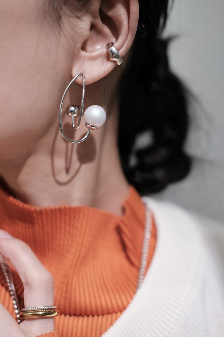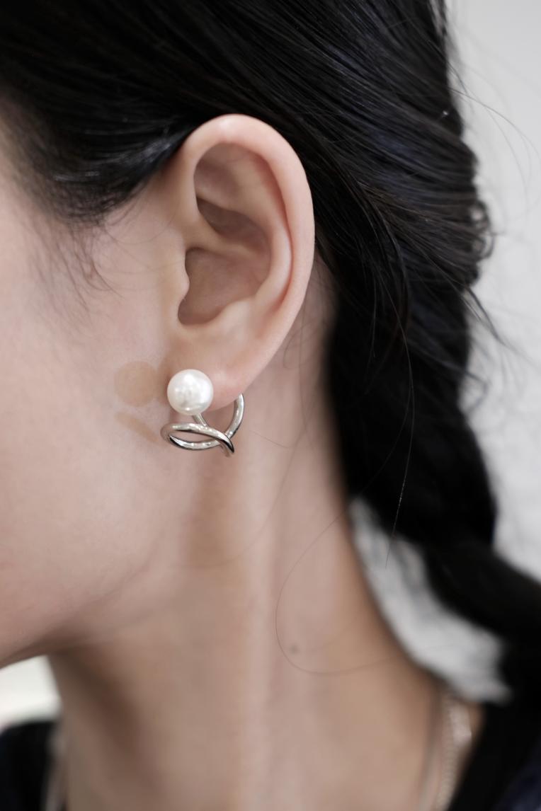 ☑︎9mm幅 パールキャッチエイトカーブフックピアス