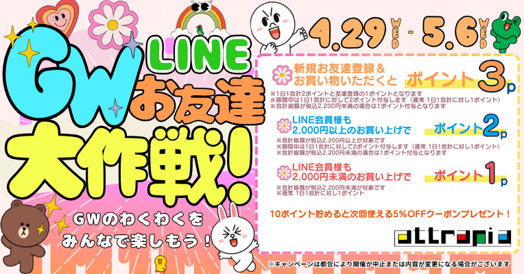 attrapia全店でLINEポイントをボーナスプレゼントします♪