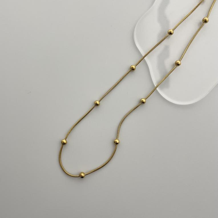 ✔︎ ステンレス ステーションボールスネークチェーンネックレス/ゴールド