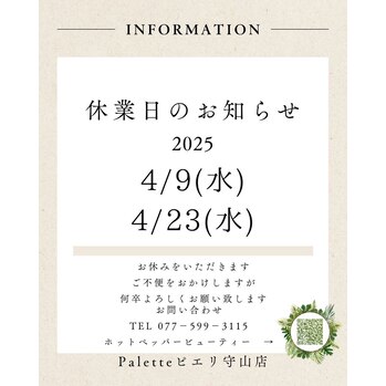 いつもPaletteピエリ守山店をご利用いただき誠にありがとうございます。