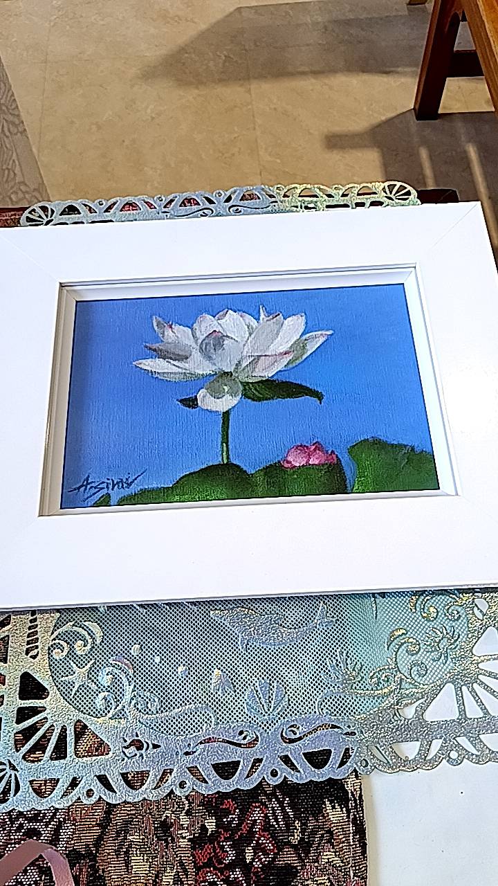 白井あや子画家「蓮の咲く頃」50号、「蓮」・「希望」油絵 サムホール!