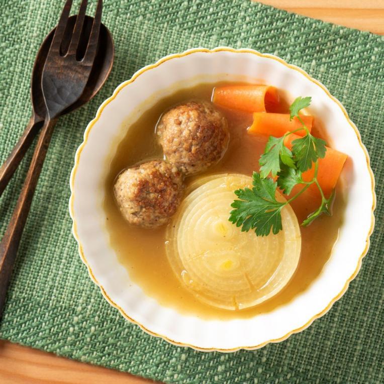 【新玉ねぎと肉団子の和風カレースープ】