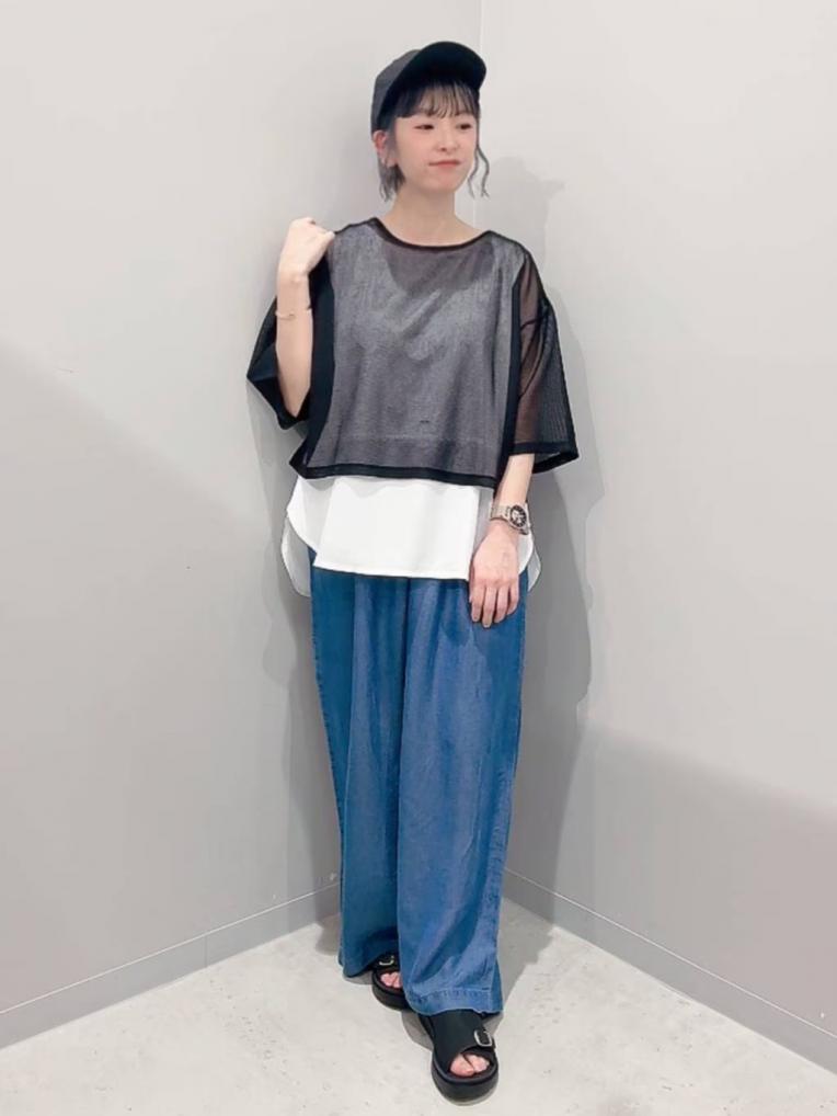 トップスは、表面感のあるシアー素材で暑い時も快適です!!