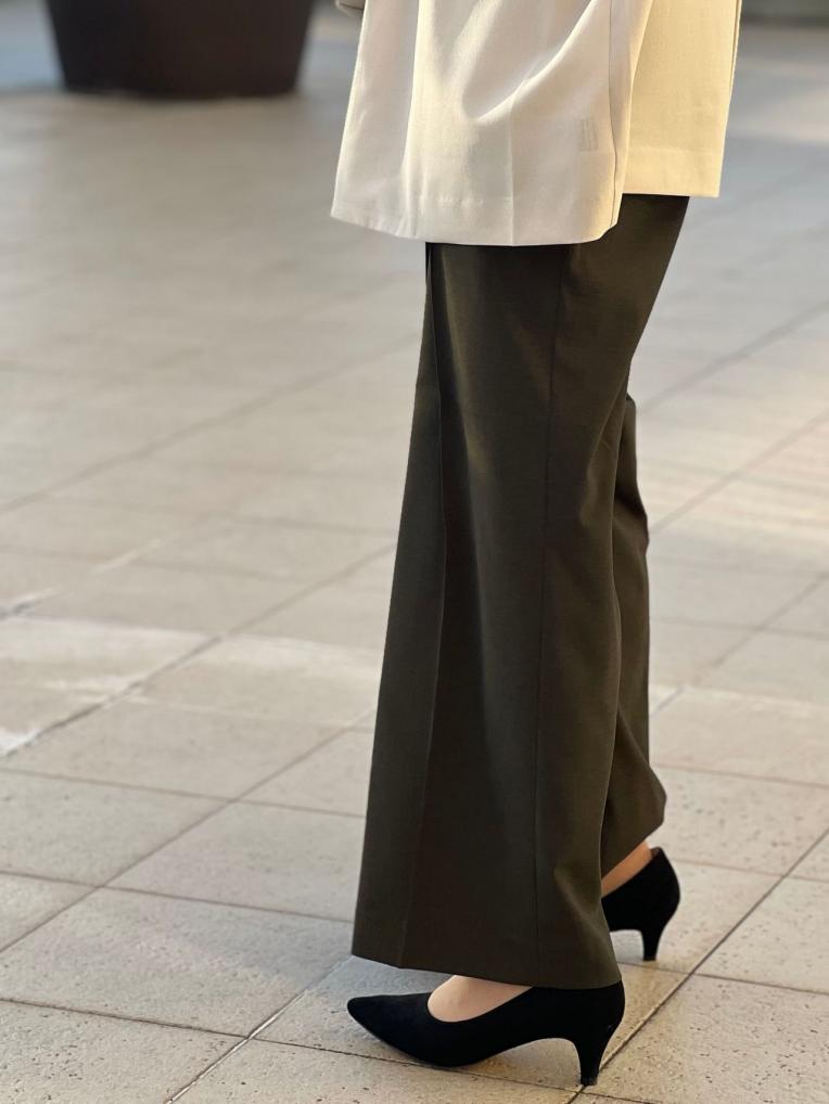 ワイドパンツですが、たっぷりしすぎないすっきりしたシルエットでキレイ目コーデに最適。