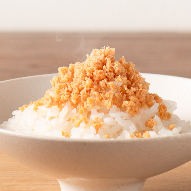食感にもこだわり、明太子の辛みが鮭フレーク全体にまんべんなく行きわたるよう、ふわっとした口当たりに仕上げました!