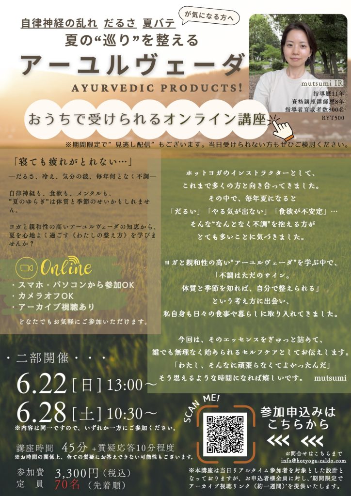 ヨガと親和性の高いアーユルヴェーダの知恵から、
