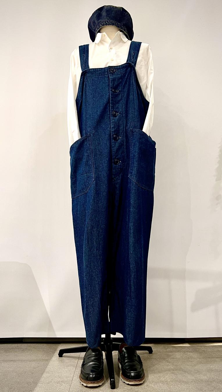 深みのあるインディゴカラーとワイドなシルエットが魅力のデニムオーバーオール。