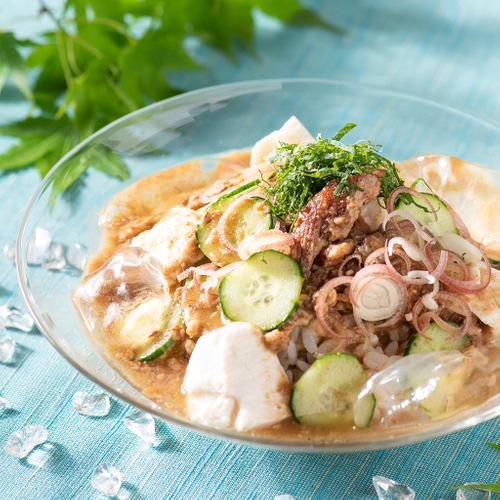 夏の暑い日によく冷やした本品をご飯にかけて、きゅうりやみょうがなどをのせて、お召し上がりください✨
