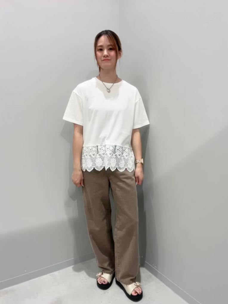 トップスの控えめ裾レースがコーデのアクセントに