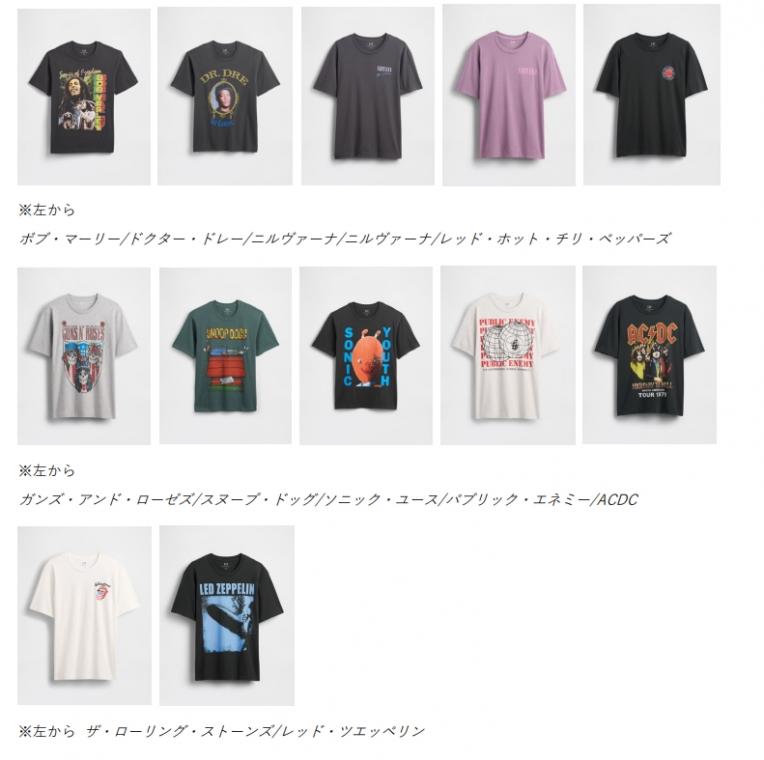 今回の T シャツは、ビートルズやカート・コバーン、Nas など 8 組のアーティストがラインナップに加わり、新しいデザインを含む過去最多の 21 型を展開しています。